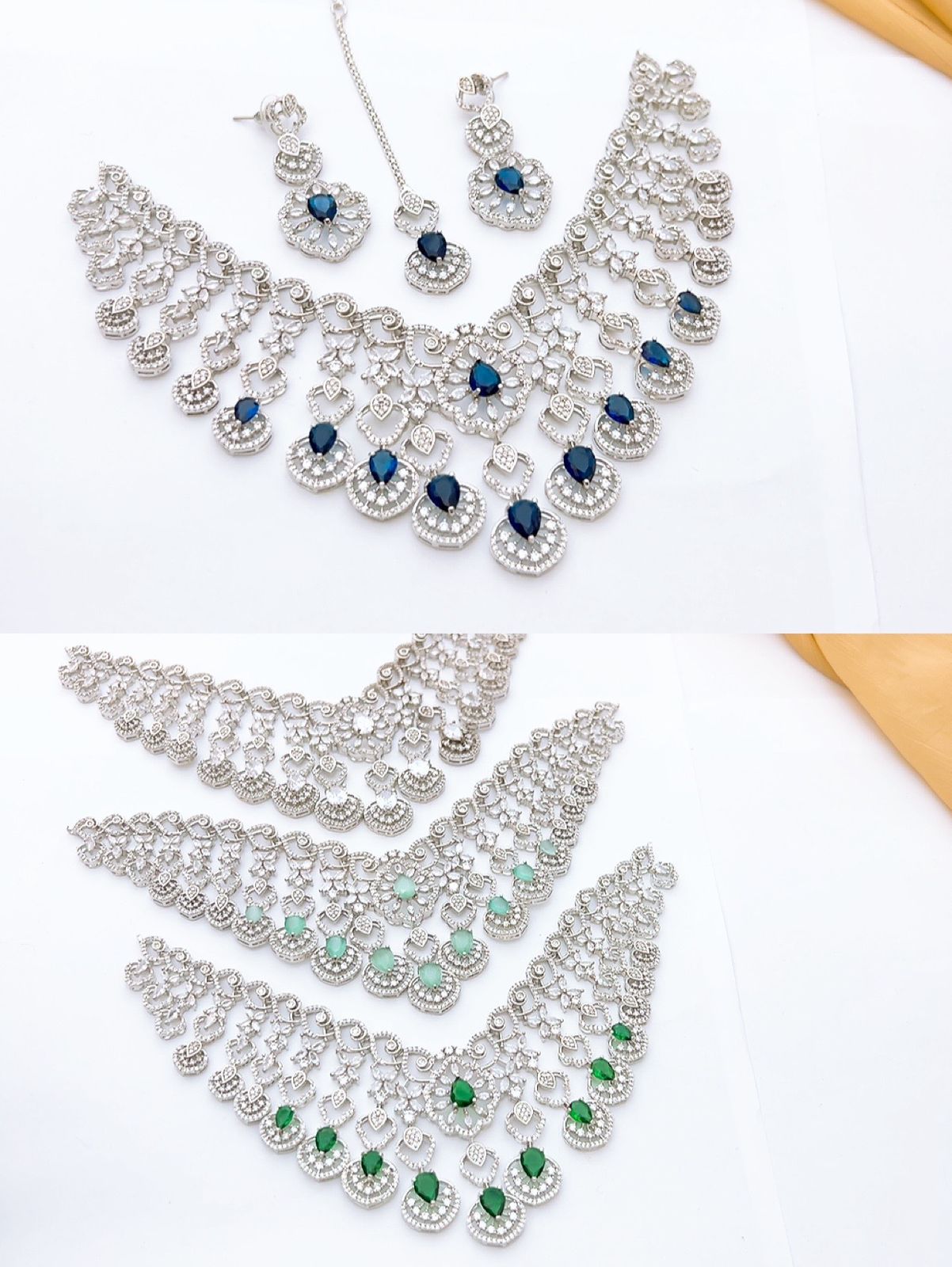 Royal Teardrop Choker Set – Premium Artificial Diamond Necklace, Earrings & Maang Tikka (Multiple Colors)