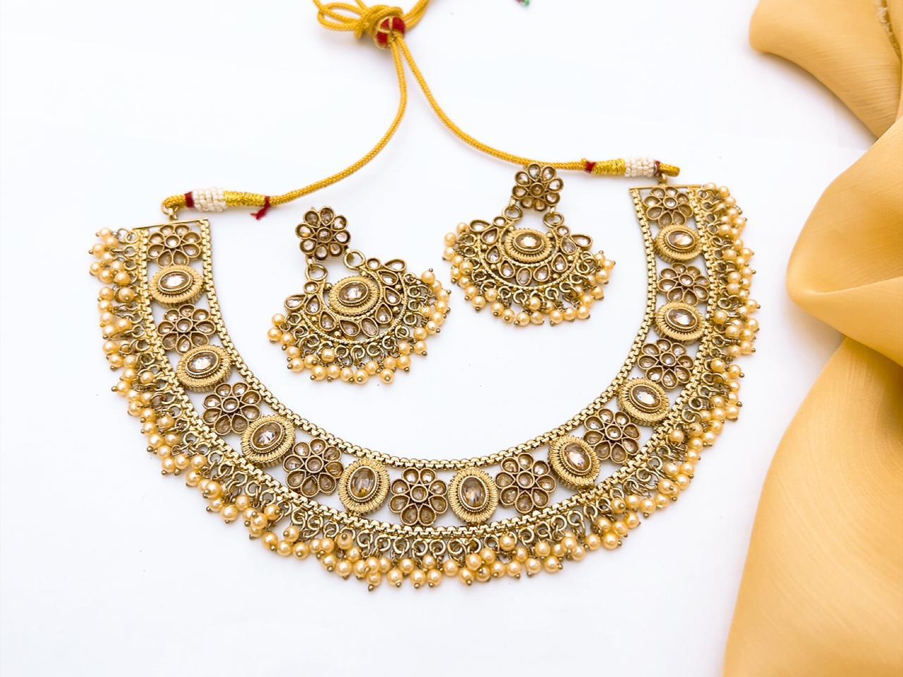 Traditional Kundan Style Gold-Plated Necklace Set with Earrings | Party & Wedding Jewelry