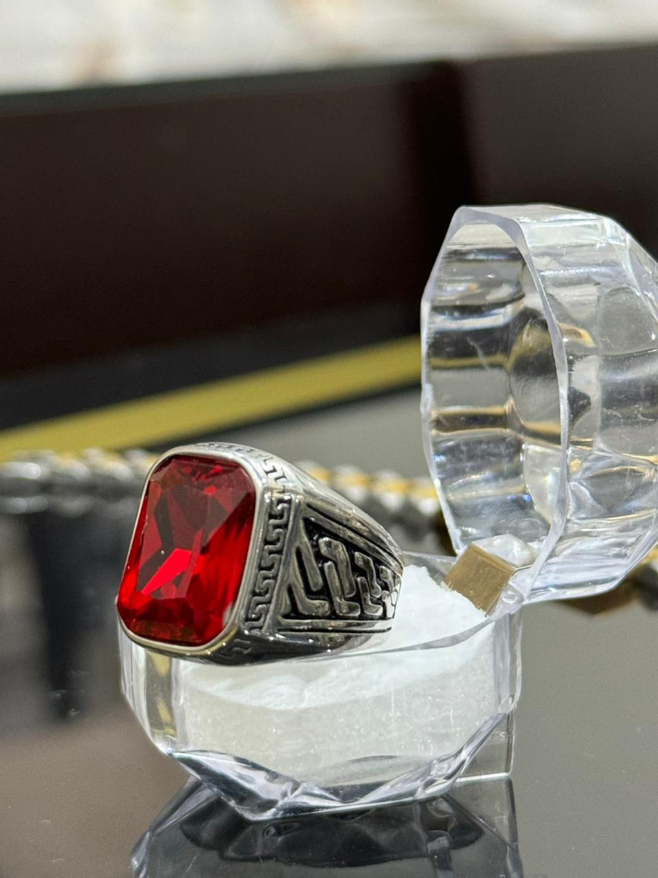 Add a powerful touch to your personality with the Yaqoot Stone Ring from Aura Official. This stunning ring features a striking deep red gemstone, set in an intricately designed metal band that reflects both strength and sophistication.